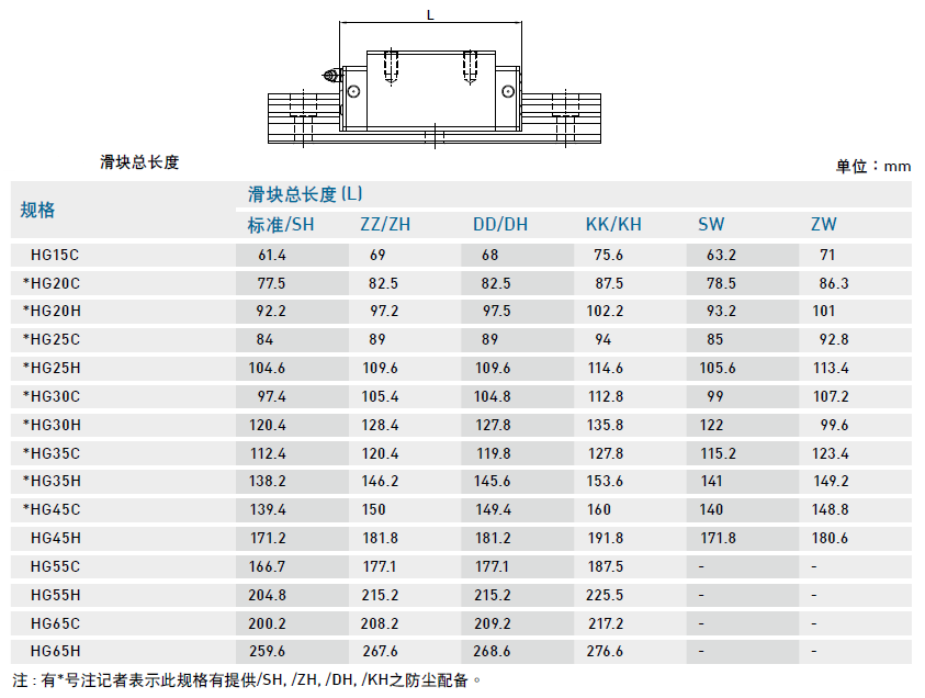 (5) 防塵代碼之滑塊總長度