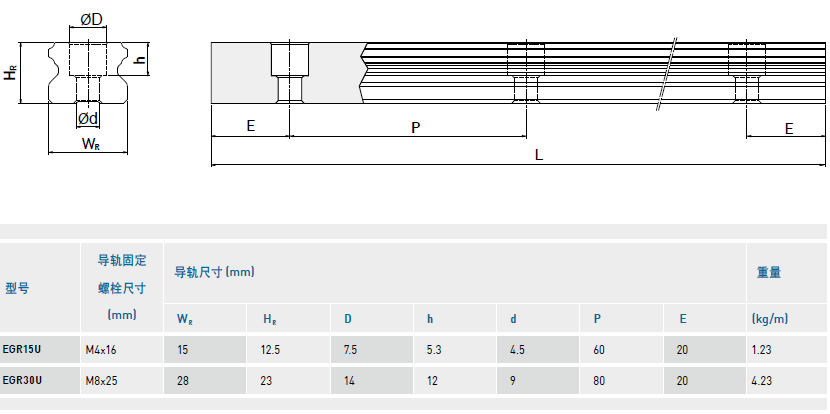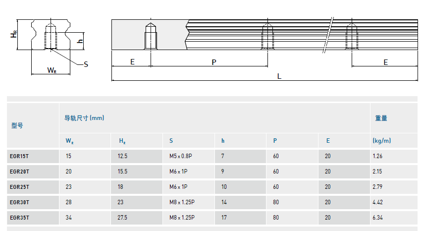 直線導軌EG系列上、下鎖式區別及尺寸表