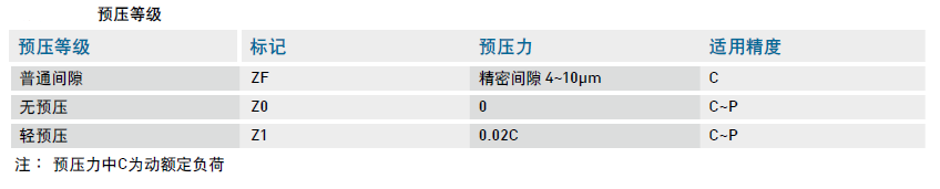 MGN/MGW 系列提供普通間隙、無預壓、輕預壓三種預壓力。
