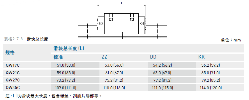 注 : ( )為滑塊最大長度,包含螺絲、刮油片唇部等。